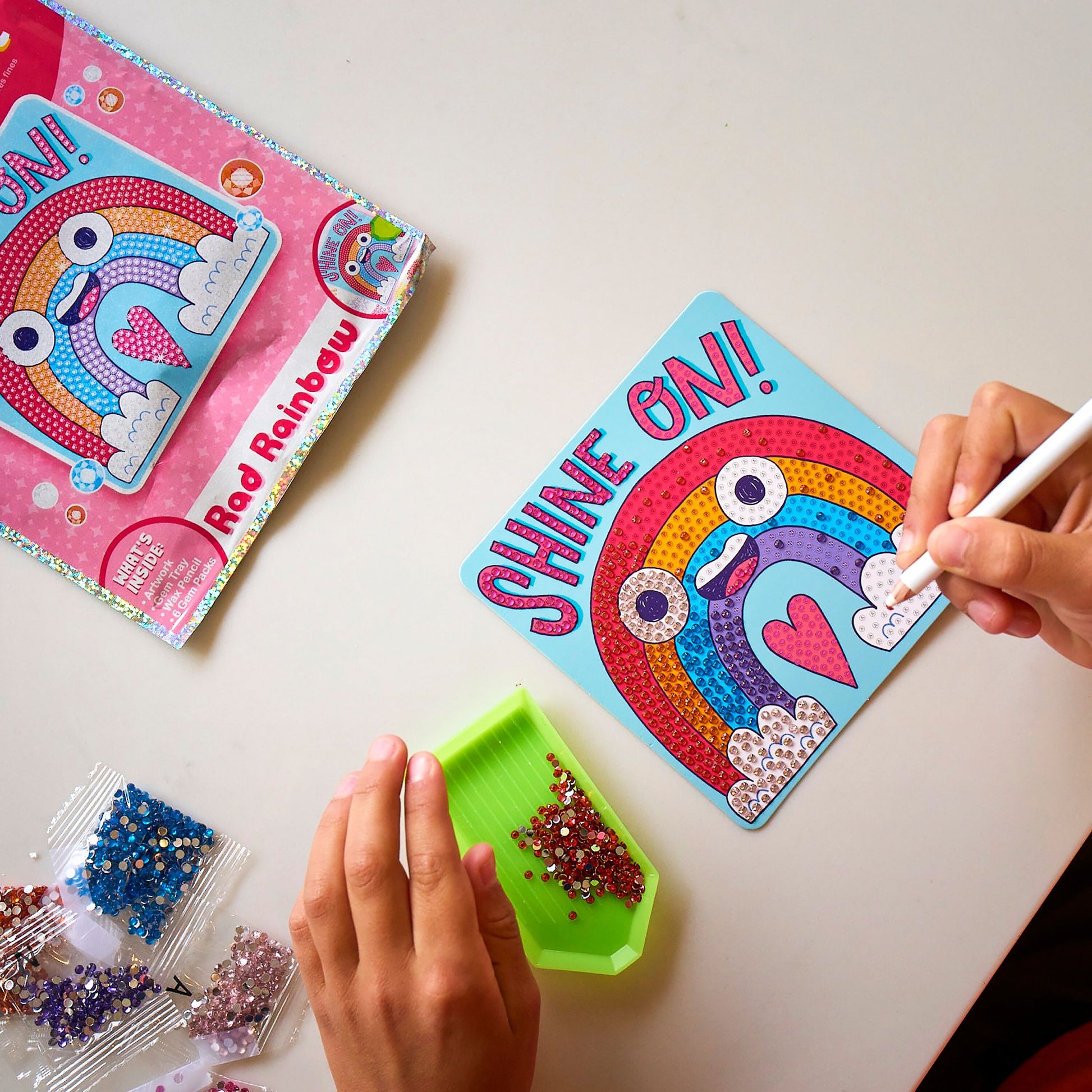 ოლის კრისტალების სახელოვნებო ნაკრები მოიცავს ყველაფერს, რაც საჭიროა მხიარული ცისარტყელას ასაციმციმებლად. ნაკრებში შედის ცისარტყელას ნახატი, 6 სხვადასხვა ფერის კრისტალების პაკეტი, ლანგარი და კრისტალების დასატანი ფანქარი.